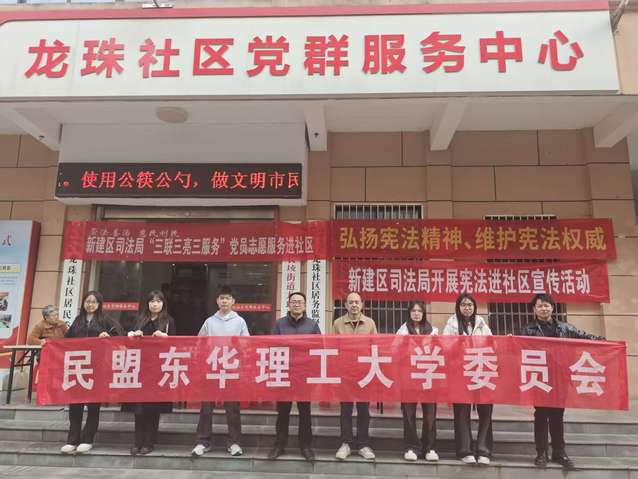 为进一步弘扬宪法精神,增强全民法治观念,在第十二个国家宪法日来临之际,民盟东华理工大学委员组织盟员教师于12月2日、4日联合南昌市新建区司法局、抚州市临川区西大街办事处,开展以“学习宣传贯彻习近平法治思想,推动宪法深入人心”为主题的普法宣传活动。